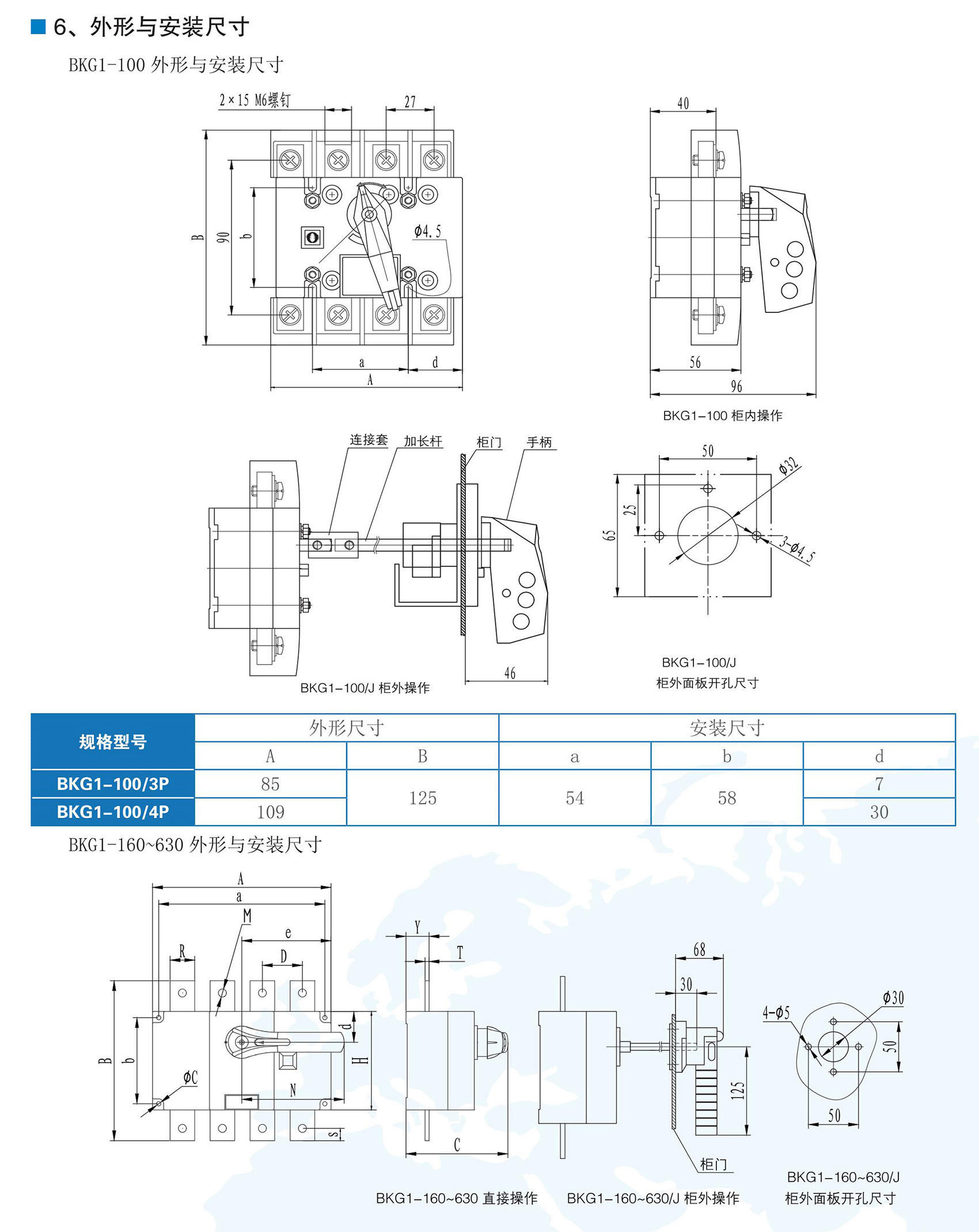 BKG1系列隔离开关适用于交流50/60Hz,额定工作电压至AC690V,额定电流为1600A及以下的电力系统中,可广泛用于电力、建筑、冶金及其它行业的配电系统和自动化系统中用于不频繁接通、分断和隔离电路之用,额定工作电流1000A及以上产品,只作电气隔离之用。BKG1系列隔离开关符合GB/T 14048.3《低压开关设备和控制设备低压开关、隔离器、隔离开关及熔断器组合电器》。